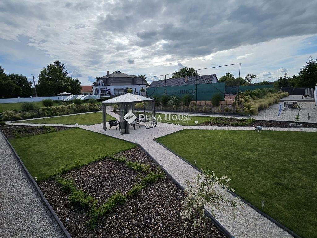 Csúcsmodern, tekintélyes villa gyönyörűen parkosított kerttel, teniszpályával, medencével, wellness részleggel, edzőteremmel és ló kifutóval, 25 percre a budapesti repülőtértől. Ez a gyönyörű villa 500 m2-es lakóterülettel és 8038 m2-es gondozott kerttel számos álmot testesíthet meg. Pest megye egyik legkülönlegesebb ingatlana, történelmi faluban. Az egyedi kőkerítéses, elektronikus kapukkal rendelkező kastély a fényűző, modern vidéki élet lehetőségét kínálja. Csendes, teljes infrastruktúrával rendelkező községben található, ahonnan Budapest belvárosa könnyen megközelíthető a közelben lévő számos főúton és autópályán keresztül, miközben tömegközlekedési lehetőségek is rendelkezésre állnak jó csatlakozással számos nagyváros irányába. A világos, nagyméretű szobák rendkívül tekintélyes megjelenést kölcsönöznek az ingatlannak, köszönhetően a nagy belmagasságnak és a fényt árasztó dupla üvegezésű ablakoknak. A kis folyó mellett elhelyezkedő kertben madárcsicsergés csábít sétára, a teniszpálya, az edzőterem, a privát wellness részleg jacuzzival és szaunával, valamint a nagy fedett medence teljes kikapcsolódást biztosít. Ebben a tágas otthonban biztosan minden családtag megtalálja kedvenc helyét. A folyamatosan karbantartott kert pavilonokkal egy kellemes kávé elfogyasztására hív a napsütésben, de teret adhat bármilyen alkalom, évforduló méltó megünneplésére. Ideális hely egy gyerekes családnak, vagy egy olyan cégnek, amely egy reprezentatív helyen szeretné felépíteni bázisát. A ló kifutó és a kutya agility terület ideális az állatok szerelmeseinek. Egy különálló melléképület lehetőséget kínál arra, hogy otthonában alakítsa ki irodáját, miközben teljesen a feladataira koncentrálhat. Ez a terület akár bemutatóterem vagy művészeti stúdió létrehozására is tökéletes lehetőséget kínálhat. Magán- és kereskedelmi felhasználás akár egyszerre is lehetséges. Ez a csodás villa különálló melléképülettel 1933-ban épült francia neoreneszánsz stílusban. 2019-ben teljes korszerűsítésen esett át, 2024-ben pedig további felújítást végeztek rajta a stílus és az elegancia jegyében. A villa 400 m2-es lakóterülettel, nagy tetőtérrel és 63 m2-es borospincével rendelkezik. A melléképületben található egy nagy és világos 106 m2-es stúdió és egy 80 m2-es tetőtér, ahol akár több apartman vagy szálláshely kialakítására is lehetőség nyílik. Egy további 20 m2-es helyiség található itt, melyet jelenleg raktárnak és műhelynek használnak. Járművei számára egy nagy garázs és egy fedett kocsibeálló nyújt biztonságos helyet. Az ingatlan alkalmas több generáció együttélésére, de remek üzleti lehetőséget kínál, ha kis szállodát, rendezvényközpontot, vagy idősek otthonát szeretne létesíteni. A kert és a hozzá tartozó nagy terület további beépítésre ad lehetőséget. A helyiségek és területek részletes listája: Villa: 4 hálószoba, 2 gardrób, 3 fürdőszoba, Nappali, Szalon, Konyha, Ebédlő, Előtér, Tároló / mosókonyha Edzőterem Padlástér Borospince Terasz 2 erkély Melléképület: Bemutatóterem / iroda, Wellness részleg jakuzzival és szaunával, Fürdőszoba Garázs Tároló / műhely Tetőtér Hagyományos kemence Kert: Fedett medence (10 m x 5 m) Teniszpálya 2 pavilon Bekerített lófuttató Kutya agility pálya Ez a rendkívüli ingatlan a múltban, és a teljes felújítás után ma is, főúri rezidenciaként szolgált. Akár családi otthonként szeretné használni, akár egy tekintélyes hétvégi kúriát keres távol a világ zajától és a tömegtől, ne hagyja ki ezt az egyedülálló lehetőséget! Bővebb információért és megtekintés egyeztetéséért keressen bizalommal! Top modernised prestigious villa with park-like garden, tennis court, pool, wellness, gym and horse paddock, 25 min from the airport of Budapest. This beautiful villa with 500 m2 of living space and 8038 m2 of manicured garden fulfills many living dreams. It is one of the most legendary properties in Pest county in the heart of Hungary. The unique fully fenced mansion with electronic gates combines luxurious modern living in the countryside. It is located in a peaceful village with full infrastructure with easy access to the city centre of Budapest through many main roads and motorways closeby. Well connecting public transportation lines are also available to many larger cities. The bright, large rooms have a very prestigious appearance thanks to their enormous room height and large double windows flooded with light. Birds chirping in the garden which ends up by a small river inviting you for a walk, the tennis court, the gym, the private wellness area with jacuzzi and sauna, as well as the large pool with roof offers relaxation. Surely every member of the family will find their favourite spot in this spacious home. The continuously maintained garden with pavilions invites you to enjoy a cosy coffee in the sun or to celebrate any occasion or a party. Ideal place for a family with kids to live or a company that wants to combine living and working at a representative location. The horse paddock and dog agility area are ideal for pet lovers. A separate granny flat offers you the opportunity to establish your office at home whilst your privacy is guaranteed. This area can even provide you a perfect option to create a showroom or your art studio. Private and commercial use is possible even at the same time. This detached villa with separate annex was built in1933 in French Neo-Renaissance style. It went under a full modernization in 2019 with further styling and refurbishment in 2024. The villa has a living space of 400 m2 with a large attic and a wine cellar of 63 m2. The annex has a large and bright studio of 106 m2 and an attic of 80 m2, w