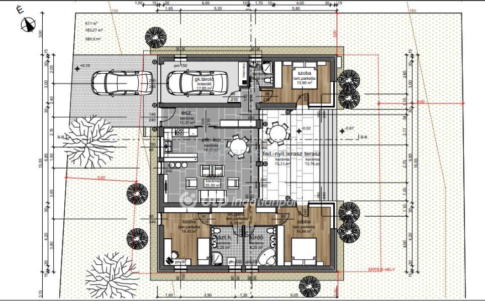 DIÓSD FENYVES RÉSZÉN, EXKLUZÍV, ÚJÉPÍTÉSŰ CSALÁDI HÁZ ELADÓ! Kiváló lokáció, LUXUS szintű kivitelezés! Diósd legkedveltebb övezetében, aszfaltozott utcában, igényes házak környezetében eladó egy újépítésű, bruttó 180m2-es, amerikai konyhás nappali, étkező + 3 hálószobás, 3 fürdőszobás, garázsos, nyitott és fedett teraszos, önálló családi ház. A projekt most indul, várható átadás 2026. 3. negyedév. A házhoz tartozó telek területe, összközműves, 611m2, önálló helyrajzi számon. A családi ház falazata 30-as Porotherm tégla lesz, 15 cm-es EPS szigeteléssel, a műanyag nyílászárók 3 rétegű üvegezéssel lesznek ellátva. Modern, hőszivattyús fűtésrendszer, H tarifával, padlófűtéssel, a tető extenzív zöldtető és allókorcos fémlemez fedéssel kerül megvalósításra. Az ár tartalmazza a további extrákat is: elektromos redőny, elektromos garázskapu, elektromos nagykapu, H tarifa, klímák, valamint a napelem rendszer előkészítése. A belső burkolatok, ajtók, szaniterek választhatóak, de a projekt jelen szakaszában még a belső elosztás végső kialakításába is beleszólhat az új tulajdonos! A tervek alapján a családi ház helyiségei: előszoba, amerikai konyhás-étkezős nappali + 3 hálószoba, 3 fürdőszoba, nyitott és fedett terasz és garázs. Az infrastruktúra kiváló, közelben buszmegálló, az iskola, óvoda, orvosi rendelő, bevásárlási lehetőségek. Az M0, M1, M7 autópálya 10 perc alatt érhető el. Az OTP Bankcsoport teljes körű ügyintézéssel áll az eladók és a vevők rendelkezésére! A kínálatunkból választott ingatlan finanszírozásához kedvezményes hitelkonstrukciókat kínálunk. Az adásvételi szerződés megkötéséhez igény szerint megbízható ügyvédi közreműködést biztosítunk, és segítséget nyújtunk az adásvételhez kapcsolódó ügyek intézéséhez. Referencia szám: M314001 | |||