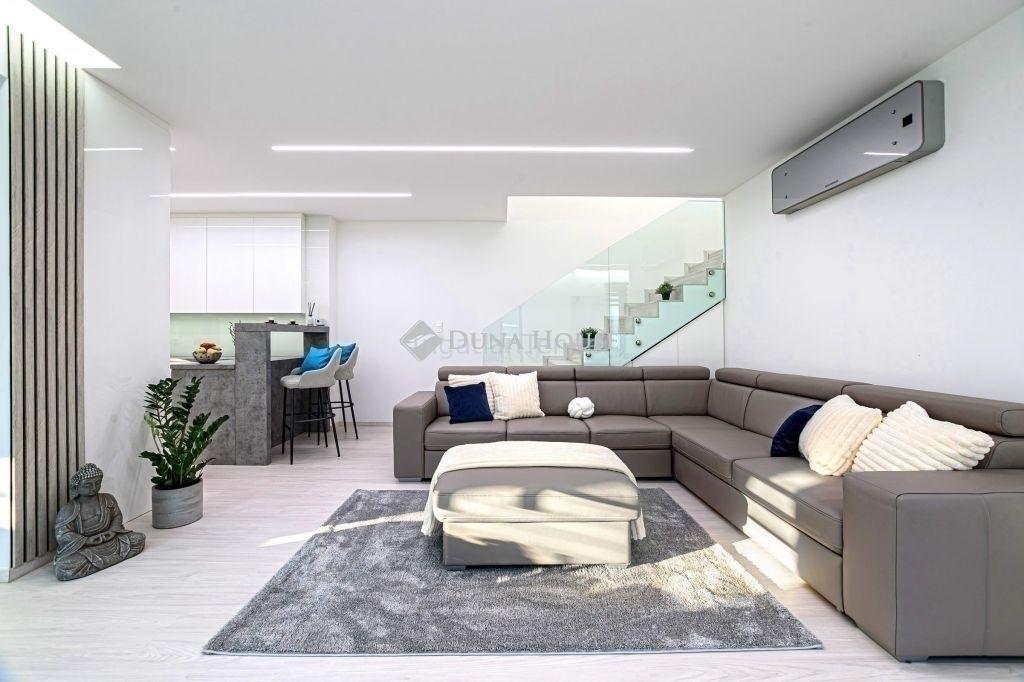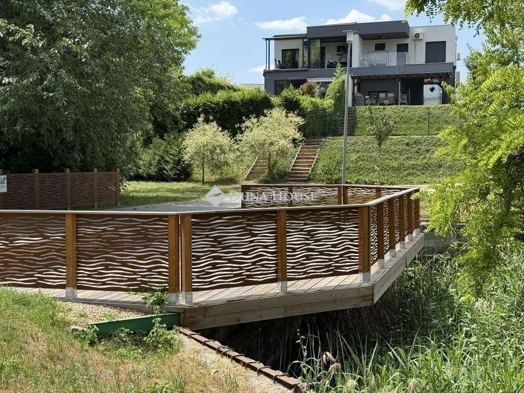 Eladó egy gyönyörű, napfényes téglaépítésű családi otthon a Sissy Villaparkban, közvetlenül a festői Pusztaszentjakabi Tó partján. Az ingatlan modern hőszivattyús és fan-coil fűtési rendszerrel rendelkezik, ami a kellemes belső hőmérséklet mellett a környezetvédelmi normáknak is megfelel. A téglából épült, napfényes ház 2024-ben került átadásra, így Ön lehet az első, aki beköltözhet ebbe a prémium minőségű új építésű otthonba.A Sissy Villapark, ahol az ingatlan található, egyedülálló környezetet kínál leendő tulajdonosainak. A villapark saját erdősséggel és tóval rendelkezik, így garantálva a nyugodt, természetközeli életérzést. Az otthon nagy üvegfelületei és letisztult stílusú, nagy teraszai hozzájárulnak ahhoz, hogy a természet szépsége még közelebb kerüljön Önhöz.A villapark kitűnő választás lehet azoknak a családoknak, akik a nagyváros forgatagától ideális távolságra, mégis minden kényelmi szolgáltatással ellátott, új otthonban szeretnének élni.A villapark útjait díszkővel burkolták, és az éjszakai világítást elegáns kandelláberek biztosítják, ami még inkább hozzájárul a környék exkluzív megjelenéséhez.Ebben a festői környezetben az új otthona nem csak egy ház lesz, hanem egy olyan hely, ahol a mindennapok forgatagából kiszakadva igazán élvezheti az élet nyugalmát. A tó körüli sétány és a napozó stégek tovább növelik ezt az élményt, hiszen így a természet szépsége és a víz nyugalma mindig csak egy lépésre lesz Öntől.Az otthon árában benne foglaltatik a prémium minőségű gépesített konyhabútor és az összes, a képeken látható prémium bútor, így Önnek nem kell plusz költségekkel számolnia az álomotthona berendezésekor.Ne hagyja ki ezt az egyedülálló lehetőséget, hogy a Sissy Villaparkban, Erzsébet királyné egykori kedvelt helyénél lévő, környezettudatos és modern otthon tulajdonosa lehessen.Keressen minket bátran további részletekért és tegye meg az első lépést álmai otthona felé a Sissy Villaparkban! A Duna House teljes kínálatával kapcsolatban forduljon hozzám bizalommal.Eladás és vétel teljeskörű ügyintézése, ingyenes tanácsadás, értékbecslés,megbízható ügyvédi háttér biztosítással. Hitel és CSOK ügyintézés a leggyorsabban, a legjobb feltételekkel.Személyre szabott ingyenes pénzügyi tanácsadás biztosításokkal és befektetésekkel kapcsolatban.Vevőink számára a szolgáltatásunk díjmentes. 06-70- | |||