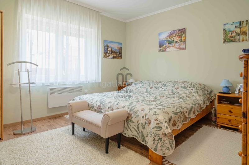 Keszthely belvárosának egyik forgalommentes utcájában eladó egy kiváló elosztású, barátságos családi ház. Ez az otthon tökéletes választás azoknak, akik a város központjában vágynak kertes házas kialakításra és modern belső terekre. Amiért érdemes megtekinteni: - Tágas közösségi tér: A ház lelke a nappali-étkező-konyha egy légtérben, amely világos, tágas és közvetlen kapcsolatot teremt a családi élet helyszínei között. - Ideális szobabeosztás: A házban 2 kényelmes hálószoba található, valamint egy külön dolgozószoba (vagy vendégszoba), ami tökéletes helyszínt biztosít az otthoni munkához vagy a látogatók fogadásához. - Praktikus részletek: A fürdőszoba mellett egy különálló vendégmosdó is helyet kapott, ami nagyban növeli a napi kényelmet. - Toszkán hangulatú terasz: A nappaliból kilépve egy mediterrán stílusú terasz várja, amely a reggeli kávézások és az esti baráti beszélgetések kedvenc helyszíne lesz. - Zöld oázis: A gyönyörű, rendezett kert igazi kikapcsolódást nyújt a mindennapokban. - Garázs és tárolás: Az ingatlanhoz duplabeállásos garázs és egy külön tárolóhelyiség is tartozik, így bőven van hely az autóknak és a hobbifelszereléseknek is. Kiváló elhelyezkedés: Minden sétatávolságra (Fő tér, boltok, iskolák), mégis teljes csend és nyugalom fogadja otthon. A Balaton-part is könnyen elérhető egy kellemes sétával. Ez a ház nemcsak egy ingatlan, hanem egy életérzés. Ide tényleg csak költözni kell A négyzetméterek és az alaprajz tájékoztató jellegű Közművek: víz,villany,csatorna | |||