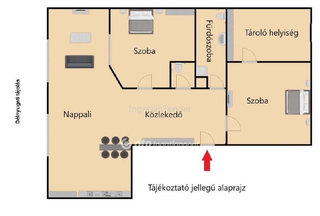 | Közös költség | 15000 Ft | Tájolás | délnyugat |