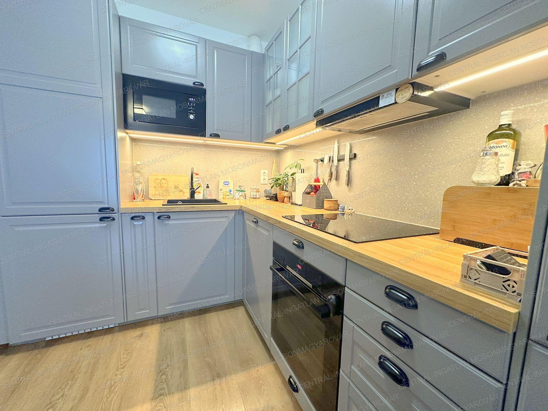 KIZÁRÓLAG A CENTRÁL-INGATLAN KÍNÁLATÁBAN! Levélen, az osztrák és a szlovák határhoz közel kínáljuk ezt a fiatal építésű társasházi lakást az 1. emeleten, nappali + 2 hálószobával és erkéllyel. A lakáshoz az udvarban 2 db, saját kocsibeálló és egy saját tároló is tartozik amit a kínálati ár tartalmaz. A levéli eladó, társasházi lakás jellemzői: -2024-ben elkészült lakás, szinte új állapotú! Délkeleti fekvésű, nappali és a hálószobák is világosak. -A lakás kiváló minőségű anyagokkal lett elkészítve. Minőségi bútorok, beépített konyhagépek. A hasznos alapterület 53.7m2 (lakótér+erkély fele), a lakótér 50.75m2, erkélyek 5.75m2. -A lakásban több helyiségben beépített bútorok találhatóak. A konyhabútor sok pakolóhelyet rejt. A hálószobában a gardrób szekrénye igény esetén maradhat. A fürdőben is a csempéhez illeszkedő bútor készült. -A konyhabútorban beépített gépek találhatóak: mosogatógép, kerámia főzőlap, légkeveréses sütő, mikrohullámú sütő található. A nappali bútor is maradhat. -Kiváló minőség és a szinte teljes bútorozottság – ide csak költözni kell. -A lakáshoz két darab, dedikált kocsibeálló tartozik az udvaron, továbbá egy 2.55m2-es saját tároló a földszinten. -A mosonmagyaróvári bevásárló központtól 3 perc autóútra lévő lakás, fiatal lakóövezetben található. A várossal kerékpárút is összeköti. Az 1-es számú vasútvonalon könnyen elérhető Bécs, Pozsony és Budapest is. -A fűtés és a meleg víz ellátás házközponti, kondenzációs gázkazánról működik. A fűtést minden helyiségben padlófűtés biztosítja. -Minden közüzemi fogyasztás egyedi méréssel, pontos, havi elszámolással működik a lakásban. Alacsony rezsivel, maximális komforttal. -A lakásban a hűtésre egy hűtő-fűtő klíma van felszerelve az extrém meleg esetére a lakás kellemesen lehűthető és fűtésre is alkalmas. -20 cm-es hőszigetelés a homlokzaton, 3 rétegű üveggel szerelt nyílászárók, motoros és kézi mozgatású, redőnyök is találhatók, minden helyiségben szúnyogháló is van. Praktikusan kialakított belső elrendezés, fürdő és wc egy helyiségben de mégis külön található. Az eladók szeretnék a lakást kb. egy évig visszabérelni piaci bérleti díjért, továbbra is vigyázva, gondoskodva a lakás jó minőségéről. Vagy lehetséges a vételárat az éves bérleti díj mértékével csökkenteni, halasztott birtokba adással. Amennyiben ez az eladó, levéli lakás, vagy bármely a kínálatunkban található társasházi lakás felkeltette érdeklődését keressen a megadott elérhetőségeken! | |||||||||||||||||||