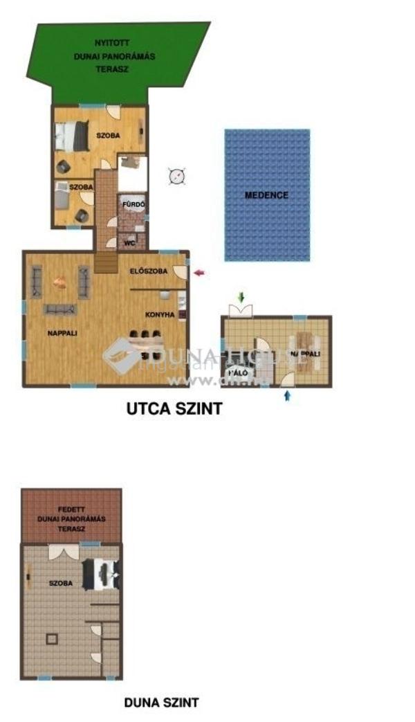 Közvetlen vízparti, eltolt szintes tégla ház medencével, saját stéggel!Az ingatlan jellemzői közé tartozik a 435 m2 telek, a nagyméretű nappali, a 4 hálószoba, mely elhelyeszkedésüknek köszönhetően akár két, vagy három generáció együttélésére is alkalmas lehet. A fűtést elektromos cirkó látja el radiátoros hőleadók segítségével, melyek a hidegebb hónapokban is meleg és otthonos környezetet biztosítanak. A nyári meleg enyhítéséről pedig a felszerelt légkondik gondoskodnak. A 10 cm-es homlokzati szigetelés hozzájárul a rezsi csökkentéséhez.A kényelemről még elektromos redőnyök is gondoskodnak, amelyek biztonágosabbá teszik a házat.A hosszú nyári napokon, vagy egy fárasztó nap után nincs is jobb, mint egy frissítő ugrás a saját medencébe.Az udvar viakolorral burkolt, ami nemcsak esztétikailag vonzó, hanem rendkívül praktikus is, hiszen könnyen karbantartható, ráadásul elegendő helyet biztosít akár 3 autó számára is, hogy kényelmesen parkolhasson.Ez a varázslatos otthon tökéletes választás azoknak, akik értékelik a víz és természet közelségét és nem akarnak lemondani a modern kényelmi funkciókról sem. Az udvaron található saját úszómedence garantálja a nyári napok zavartalan élvezetét, míg a saját stég lehetőséget biztosít a vízi sportok szerelmeseinek, hogy kedvükre induljanak csónakázni, kajakozni, vagy bármilyen vizisportot űzni.Fedezze fel ezt a természetközeli lenyűgöző, közvetlen vízparti otthont, melynek kialakítása és elhelyezkedése egyedi! Egy végtelen nyugalmat árasztó környezetben, ahol a környezet minden évszakban mesés látványt nyújt.Jöjjön el és szeressen bele a temészet közelségébe. |