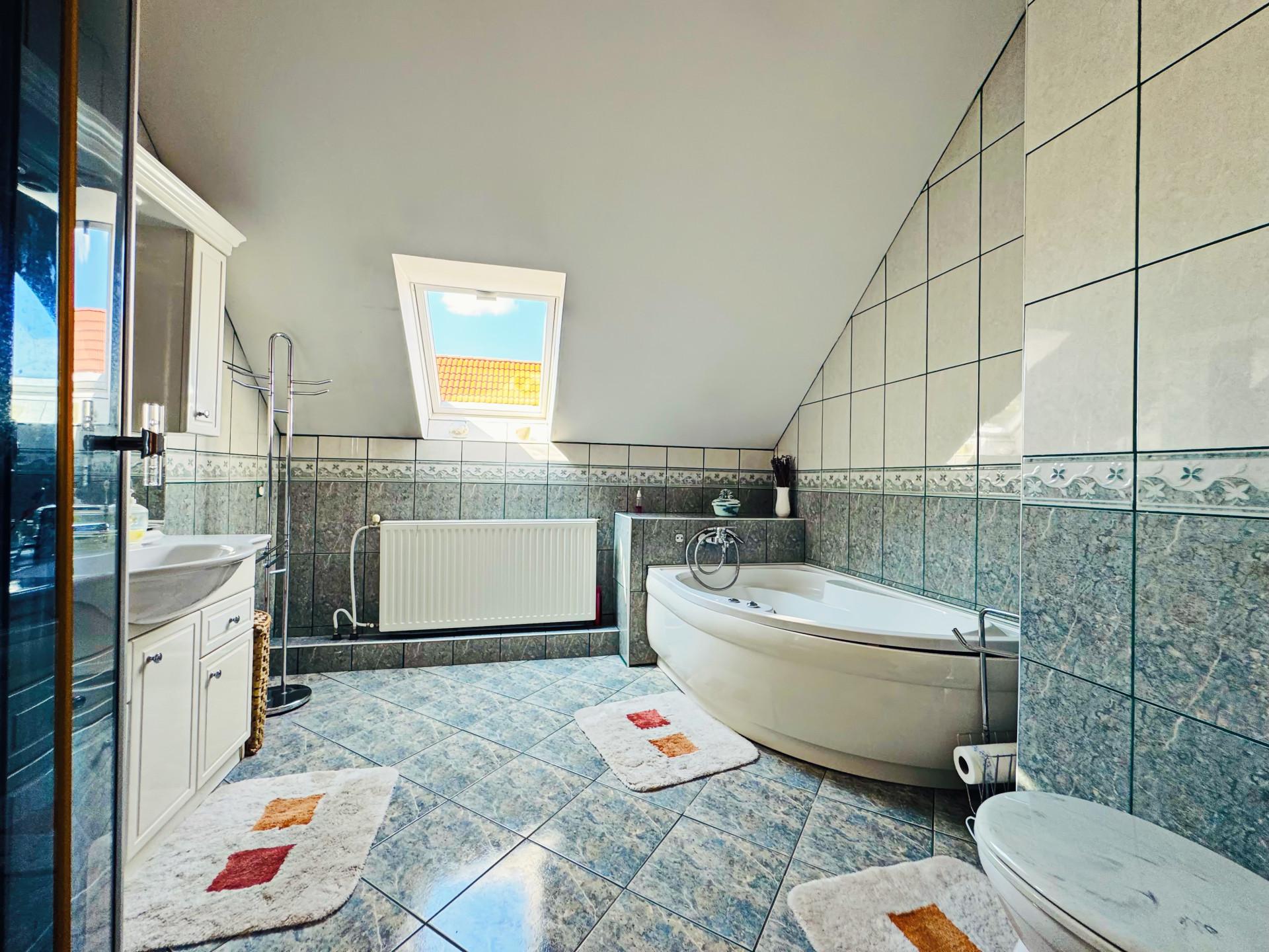 Debrecen, Veres Péter kert, a 90-es évek elején épült, 2 lakószint + alagsor kialakítású, 152 m2 lakóterületű, nappali-étkező konyha+ 4 szobás (földszinti hálószobával) hőszigetelt ikerház, száraz alagsorral, benne tágas garázzsal, tárolóval, karban tartható kis kerttel eladó. telek 225 m2, zöld hátsó kert 5 x 7.5 illetve 3.5 x 14.6 m2, összesen 88.5 m2, jelleg: ikerház önálló bejárattal, szolgalom nélkül, teljes felépítmény alapterülete: 226.68 m2, (alagsor, földszint, emelet) lakótér alapterülete: 152.28 m2, földszint: 77/ 68,12 m2, emelet: 75,2 / 55. 5m2, hasznos lakótér: 123.62 m2, alagsor: 74.4 m2 amelyből garázs 23.22 m2 ( 3x 6,45 m) nappali- étkező központi élettere 30 m2, szobák 10,36 m2; 13,26/12.9 m2; 14.4/10.44 m2; 14/ 10.4 m2; Az ingatlan rendelkezik padlástérrel, amely az emeleti lakótérből közelíthető meg. Fűtés: hőtárolós gázkazán- radiátorok. Extrák: öntözőrendszer a telken belül és a ház előtti területen, riasztó, 2 db klíma, 2 elektromos kapu, kaputelefon, elektromos garázskapu, fúrt kút. Az épület kiváló szerkezeti állapotú, élhető adottságú, földszinti hálószobával és külön gardróbbal rendelkezik. Az alagsor olyan passzív élettér, ahol a tároláson túl a kedvezőtlen időjárás esetén is hódolhatnak kedvenc hobbijuknak. A garázsban 1, az udvaron 2 szgk. elhelyezésére van lehetőség, az épület előtti utca szakasz kényelmes parkolást biztosít a vendégek részére. Az ingatlan kialakítása a szomszédtól független, zavartalan életvitelt biztosít, mivel a telekhányadok egymástól elválasztottak, külön bejárattal, utcafronttal rendelkeznek. | |||